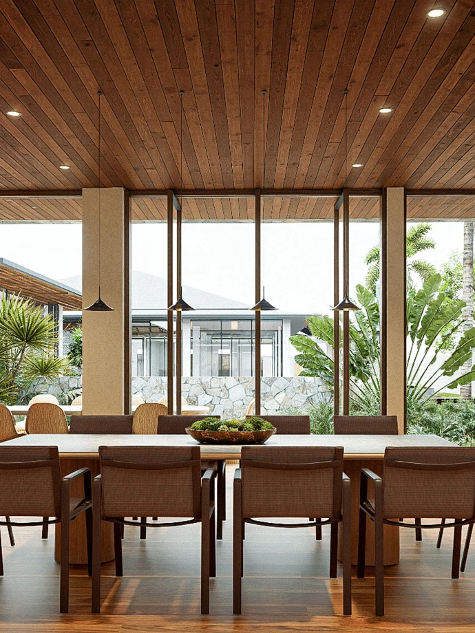 The Contemporary Tropical Retreat is a serene and luxurious escape that embodies the