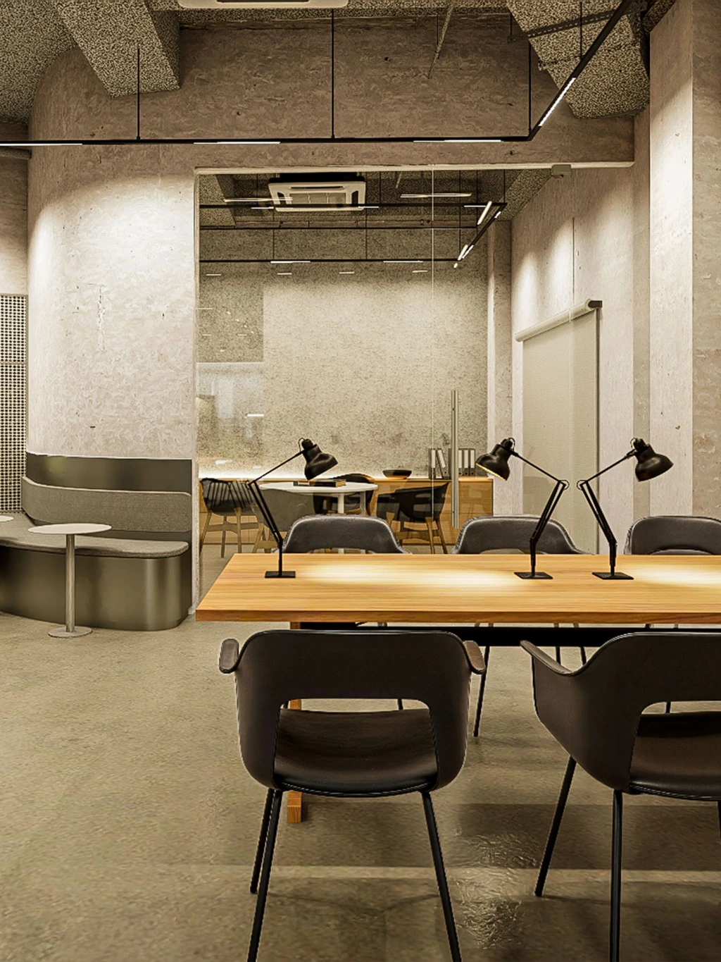 By embracing exposed industrial elements, open layouts, and natural light, this concept fosters a sense of community and collaboration. Reclaimed materials and artistic expression add warmth and depth. A space that stimulates creativity, supports workmanship, and promotes self-sufficiency, reflecting the company's values and inspiring its people to cultivate their best work.