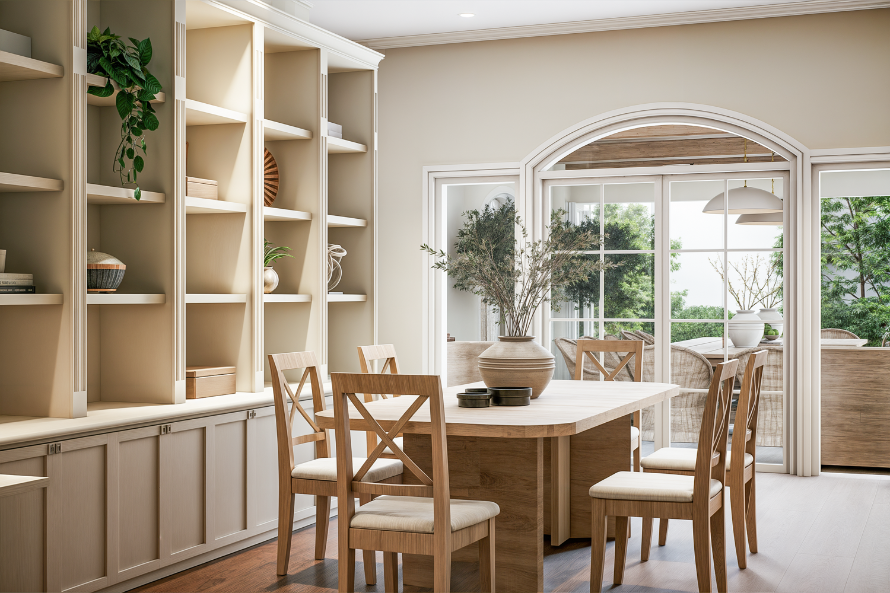 Rooted in a cozy cottage farmhouse sensibility, the home is designed to feel warm, inviting, and quietly refined. A light and airy approach allows natural light to move freely, enhancing a calm palette of warm neutrals, light oak wood, and soft textures. Natural materials such as wood, jute, and fabric bring depth and tactility, complemented by subtle brass accents that add a touch of understated elegance. Clean lines, classic detailing, and integrated elements create a seamless flow, while soft, comfortable furniture and curated décor introduce ease and familiarity. Thoughtfully layered lighting and finishes complete the space, resulting in an environment that feels fresh yet timeless, composed yet effortlessly livable.
