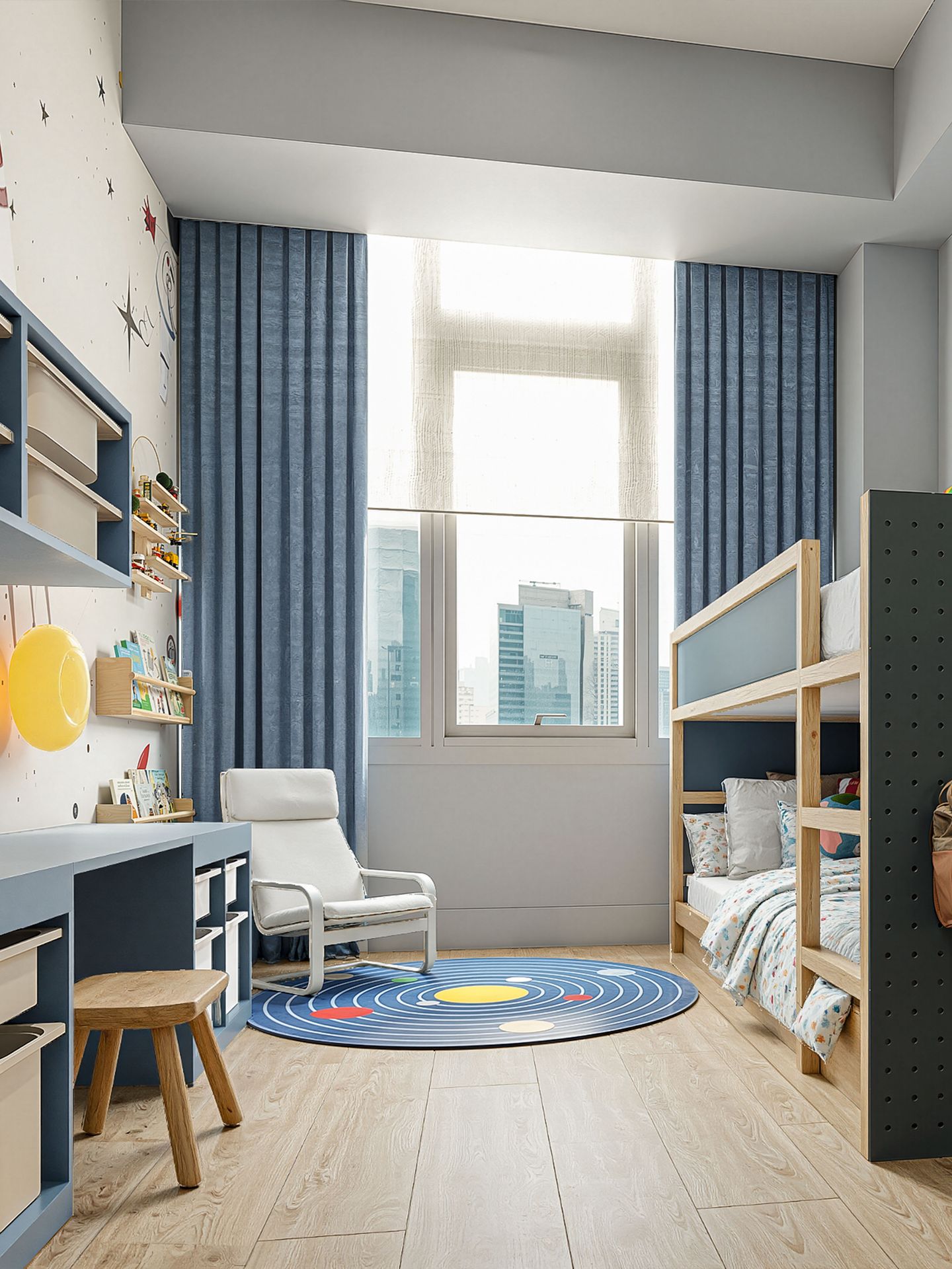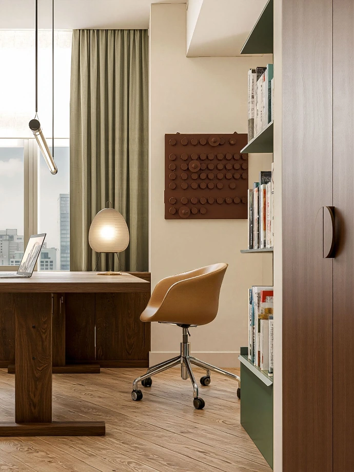The living room became a convivial hub, with laughter and conversation flowing freely. A creative corner beckoned artists to sit and dream. Bright, filtered light danced across surfaces, illuminating curated pieces and warming the space. This modern mid-century home celebrated style, comfort, and family joy.