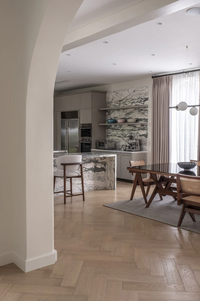 Bright, open spaces flow seamlessly, defined by clean, transitional architecture.