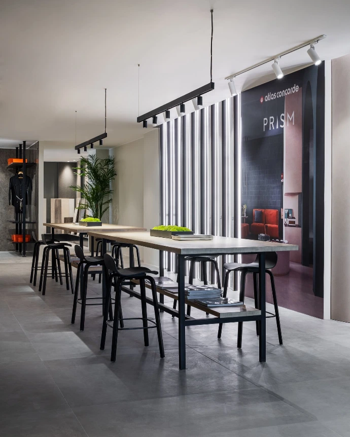 The core strategy behind the Tile Gallery’s thoughtful design is to showcase its